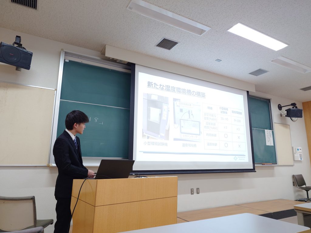 古神研究室の上原さん、木村さん、立見さん、松嶺さん、清水研究室の近藤さん、中沢 さんの6名が修士学位取得に向けて、2年間の研究成果をまとめて、発表会に臨みました。